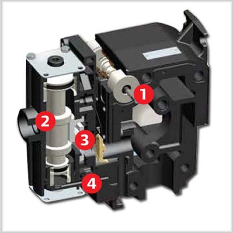 1) Válvula SimulShift™; elimina la posibilidad de que el motor se bloquee y garantiza una reacción más rápida, con más caudal –