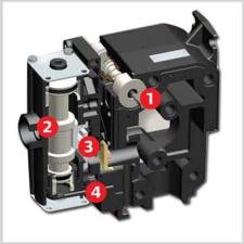 3) Valve Série "D", optimise l'air comprimé tout en supprimant les fuites internes. Construction en céramique pour une longévité accrue –